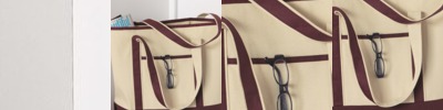 Ideal for carrying beach or gym items, this cotton canvas tote has an internal metal king ring holder.