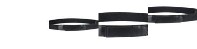 - Leather with hook and loop, "no-scratch" buckle