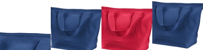 600D heavyweight material; reinforced box stitched double handles; single zipper main compartment; 3” gusset; reinforced seams; large clean embellishment areas; 47" L x 25" H x 3" D;