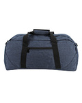 600D polyester fabric/50% recycled material; Large zippered main compartment; Detachable/adjustable wide shoulder strap for comfort; Front zipper pocket; Color-matched hardware; Padded handle wrap for carrying comfort; 27" x 13" x 13 "/Suggested Imprint: 8"W x 6"H;