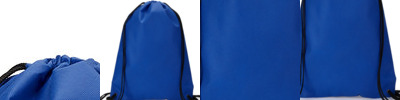 210 denier nylon; Black drawstring; 14" x 16"; Non-branded label/tag ; Suggested Imprint Size: 10"W x 12"H;