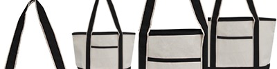 12 oz., 100% cotton concrete canvas; Large interior pocket equipped with functional pocketing; Padded laptop sleeve; Expandable sides that snap for the right amount of storage space; Zippered out pocket and removable shoulder strap; 49.5L capacity; 20"W x 12"H x 12"D; Orders must be in increments of 12 of the same color;