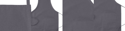 65% polyester, 35% cotton twill; Adjustable side ties; Center-divided pouch pocket; Self-fabric binding at neck and sides; 19" x 28";