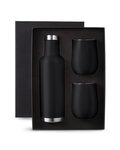 - Gift set includes one MG406 25 oz. Alsace Vacuum Insulated Wine Bottle and two matching color pieces of our PL-2229 10 oz. Stemless Vacuum Wine Tumbler with Lid in elegant black gift box