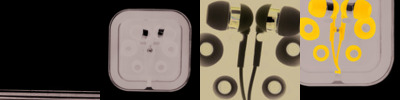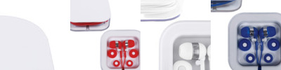 - In-ear headphones in compact square case