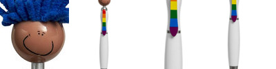 - Click-action ballpoint pen with smiley face, superhero cap and mop-top hair