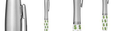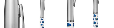 - Retractable curvy barrel ballpoint pen with Jetline's exclusive stock art grip featuring our Emoticon happy face