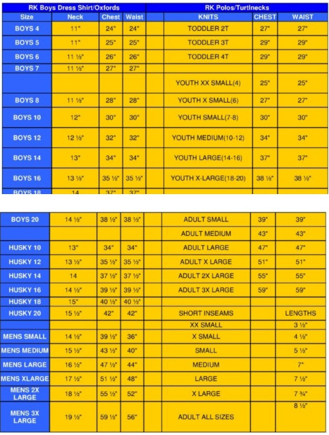 | Size | Boys 8 | Boys 10 | Boys 12 | Boys 14 | Boys 16 | Boys 18 | Boys 20 |